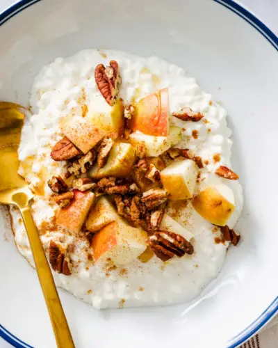 Tu je recept na zdravé jablkové raňajky, ktoré sú trochu nečakané, ale prekvapivo uspokojujúce... raňajkové misy s tvarohom! Iste, tvaroh a ananás či melón pôsobí trochu retro. Oprášme teda koncept a urobme moderný spôsob, ako začať deň. Doplňte tento vysokoproteínový syr jablkom, škoricou a pokvapkajte medom