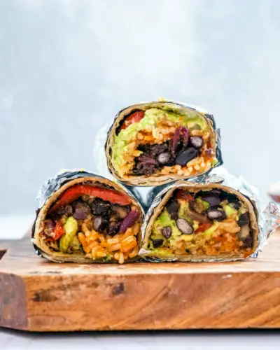 Nakoniec v našich receptoch na huby portobello: portobellos sú skvelé ako náplň do burrita! Niečo na všetkých tých chutných plnkách, ktoré sú útulne zabalené do tortilly, robí burrito neodolateľným. Toto burrito je plné chuti španielskej ryže (aka mexickej ryže), korenenej čiernej fazule, papriky a cibule, roztlačeného avokáda a samozrejme: mäsitých húb.