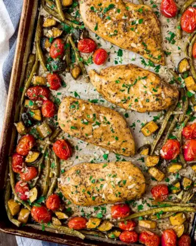 Čo je lepšie ako kura na plechu? Toto jednoduché jedlo z jednej panvice je plné zeleniny a vyžaduje len 20 minút prípravy. Recept sa dá prispôsobiť takmer každej zelenine, ktorú máte po ruke! Cez Well Plated