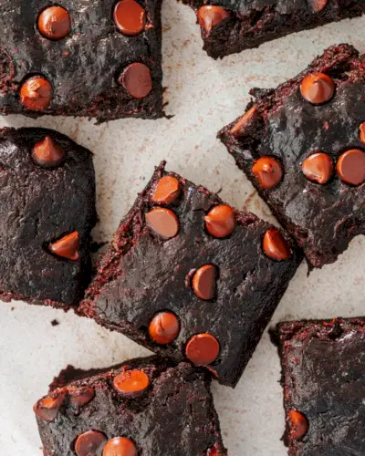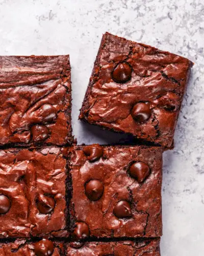 Toto sú naozaj úžasné brownies bez múky! Sú mohutné a husté, s tou správnou žuvacou, chrumkavou textúrou. Bohatý čokoládový interiér je absolútne neodolateľný a posiaty čokoládovými lupienkami: je priam nemožné neprijať si ďalšie sústo. Nikto nebude vedieť, že sú bez múky: potešia snáď každého.