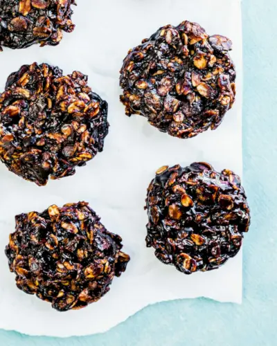 Tieto ovsené sušienky No Bake Chocolate sú o krok nad ostatnými! Sú bohaté a čokoládové, plné chuti tmavej čokolády arašidového masla a osladené len cukrom a javorovým sirupom. Majú nádherne lesklú textúru a chuť? Povieme vám, že keď sme ich obsluhovali na večierku, išli rýchlo.