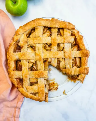Zoznámte sa s týmto klasickým jablkovým koláčom! Vločkovitá zlatá kôrka obklopuje náplň, ktorá je taká plná príjemnej korenistej chuti, že nebudete chcieť, aby sa sústo skončilo. Vyskúšajte túto rastlinnú verziu alebo choďte na našu Najlepší jablkový koláč .