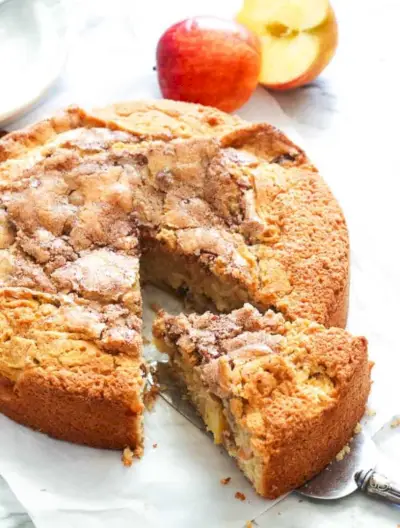 Fotografický kredit: sallysbakingaddiction.comJablkový drobčekový koláč