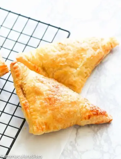 Hľadáte zábavný ručný jablkový dezert? Vyskúšajte obraty jabĺk! Tieto šupinaté ručné pochúťky sú vyrobené z koláčovej krusty so sladkou škoricovo-jablčnou náplňou. cez Immaculate Bites