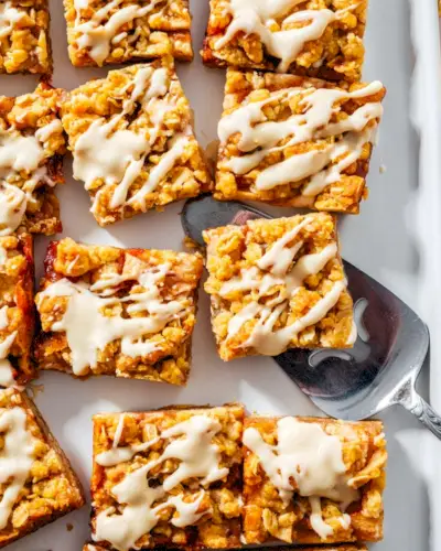 Hľadáte jednoduchý recept na jablko, ktorý prinúti každého rozprávať? Vyskúšajte tyčinky s jablkovým koláčom! Vyšľahanie tejto pochúťky z ruky je jednoduché: z rovnakého cesta sa vytvorí pevná spodná kôrka a maslové drobky zo zápražky! Medzi vrstvami je vložená jablková plnka okorenená škoricou a doplnená sladkou javorová poleva mrholenie ktorá chutí trochu ako roztopená vanilková zmrzlina.