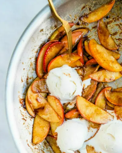 Chcete to najjednoduchšie jablkový dezert ? Nehľadajte nič iné ako tieto dusené jablká! Nie je potrebné žiadne pečenie a žiadna pokročilá príprava. Stačí nakrájať niekoľko jabĺk, podusiť ich na masle a korení a bam ! Jedzte to teplé s vanilkovou zmrzlinou a naozaj nie je nič lepšie. Vlastne, prečo aj vyrábať jablkové chrumkavé alebo jablkový koláč vôbec?