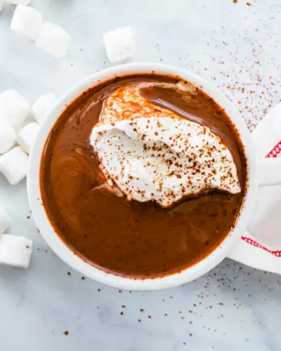 Nakoniec, čo je lepšie na ukončenie vianočnej večere ako šálka domácej horúcej čokolády? Tu je náš najlepší recept na domácu horúcu čokoládu: je krémová, bohatá, čokoládová a chutí ako sen.