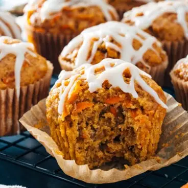 Tu je recept na muffiny, ktoré potrebujete vo svojom arzenáli: muffiny z mrkvovej torty ! Sú krásne vlhké a korenené, s príjemnými koreninami pretkanými pekanovými orechmi a svetlými vláknami mrkvy. Pridajte štipľavú glazúru zo smotanového syra na ozdobenie vrchov a dostanete ich na územie rockstar! Tento recept je dokonalý v jar , ale páči sa nám kedykoľvek počas roka: je to hit s priateľmi aj rodinou!