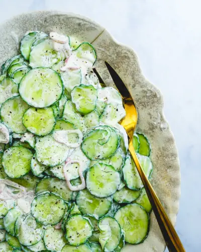 Čo obsahuje tento krémový uhorkový šalát?
