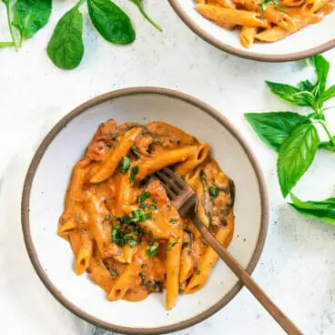 Ak hľadáte rýchle a jednoduché recepty na večeru, tento je pre vás! Toto vegetariánsky instantný hrniec recept na cestoviny už nemôže byť jednoduchší: konceptom je uvariť cestoviny a zároveň pripraviť domácu omáčku marinara: priamo v tlakovom hrnci. Potom vmiešame kozí syr, aby bola omáčka krémová: niečo ako vodková omáčka, ale namiesto toho použijeme kozí syr! Skvelé je, že to trvá len 5 minút času varenia! Ak ste oboznámení s varením Instant Pot, budete vedieť, že to trvá niekoľko minút viac ako len čas varenia: ale nie veľa!