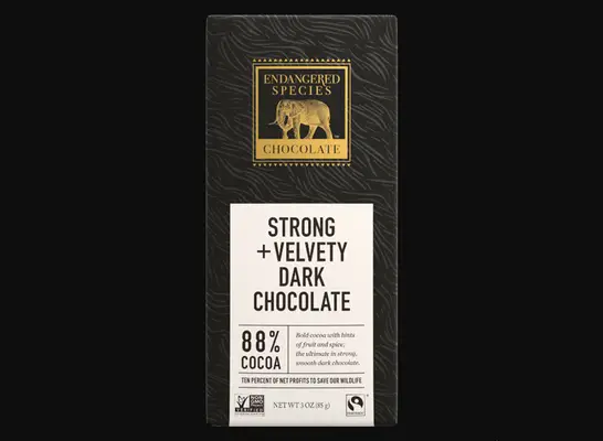 Ohrozený druh je ďalší výrobca čokolády Fairtrade, ktorý ponúka rôzne možnosti tmavej čokolády vrátane lieskových orechov, koláčkovej maliny a škorice a kajenskej. Jedným záujmom je Panther, známy tiež ako silná zamatová tmavá čokoláda, ktorá obsahuje 88 percent kakaových tuhých látok a hodín v 11 gramoch čistých sacharidov na porciu.