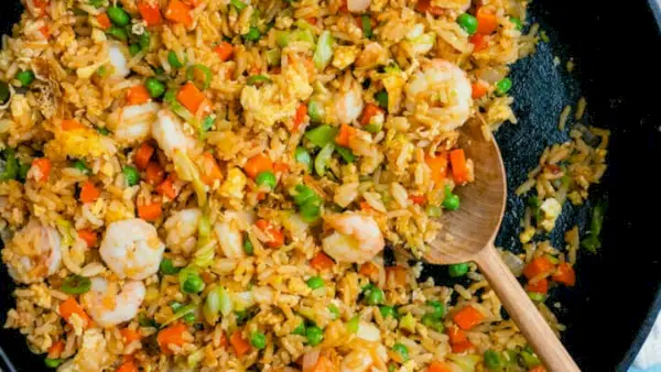 - Chytiť Vyprážaná ryža s krevetami , rýchle a jednoduché s jednodňovou ryžou