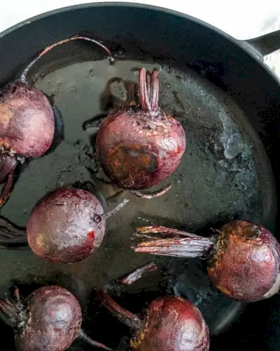 Varená repa je rýchla a jednoduchá metóda: malá repa sa uvarí asi za 20 minút, stredná za 30 minút a veľká za 40 minút. V porovnaní s približne 1 hodinou pečenia repy je to veľká úspora času! Výroba repy pečenej v rúre zvýrazní jej sladkú chuť o niečo viac, takže je to naša preferovaná metóda. Ale ak sa ponáhľate, varenie repy je správna cesta.