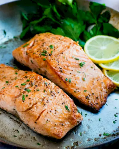 Základná metóda: Ak čas, nasoliť lososa . Lososa osušíme, potrieme olivovým olejom a posypeme kóšer soľou a čiernym korením. Zohrejte veľkú panvicu na stredne vysokej teplote a pridajte 1 lyžicu masla a 2 lyžice olivového oleja. Pridajte lososa kožou nahor a varte 2 až 3 minúty, kým sa neuvarí asi ½ cesta do stredu najhrubšej časti. Otočte lososa, nakloňte panvicu nadol a niekoľkokrát rýchlo lyžicou polejte rybu šťavou. Varte 2 až 5 minút, v závislosti od hrúbky, kým nebude v strede mäkká a ružová (a vnútorná teplota je v strede 125 až 130 F). Odstavíme z ohňa, pokvapkáme citrónovou šťavou a podávame.