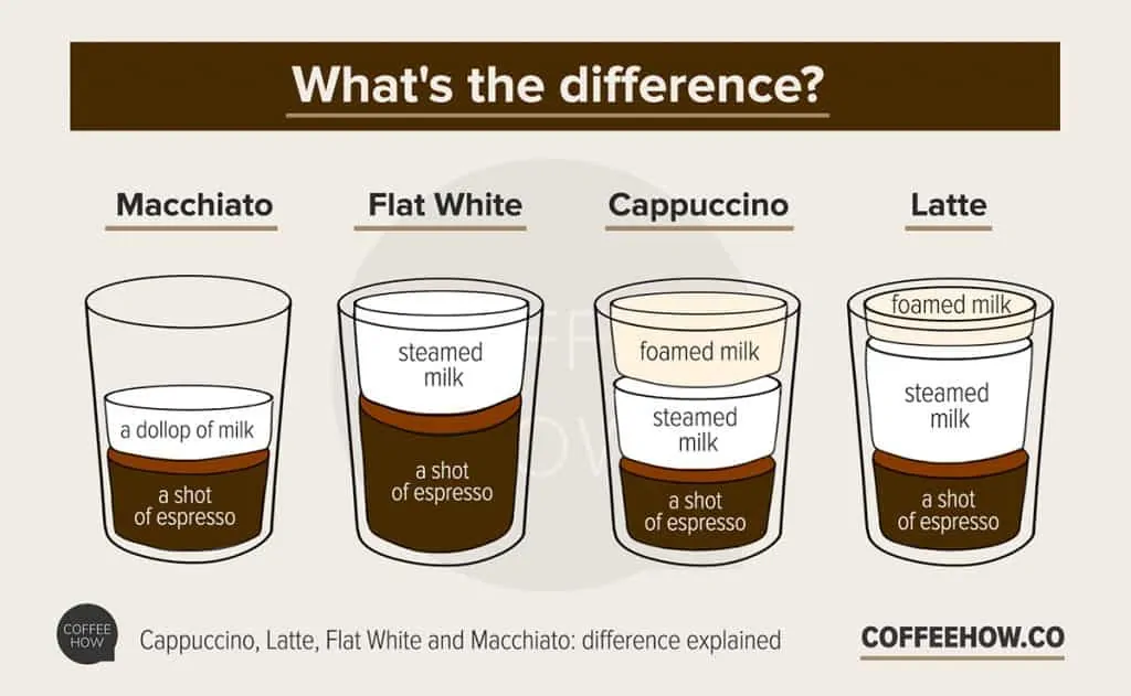 Ak radi pripravujete cappuccino, môžete si pochutnať aj na macchiato (naše osobné obľúbené). A Macchiato je 2 výstrely espressa s hrubou vrstvou peny na vrchu. Do nápoja nie je primiešané naparené mlieko! Parené alebo napenené mlieko pripravíte rovnakým spôsobom ako cappuccino. Rozdiel je v tom, že po lyžičkách odoberiete všetku tú suchú penu z mlieka a nalejete ju do espressa. Je to ako ľahšie cappuccino bez extra kalórií.