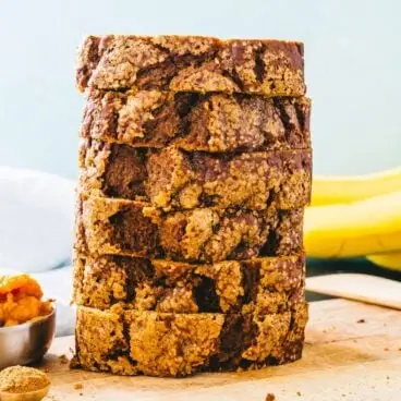 Upečte ho na ošatku a vďaka vlhkosti v banánoch vyjde neuveriteľne vlhký! Banány tiež dodávajú prirodzenú sladkosť a bohatosť, ktorá je jemnejšia ako priamy tekvicový chlieb. Je to skutočne náš nový obľúbený spôsob prípravy tohto sezónneho chleba.