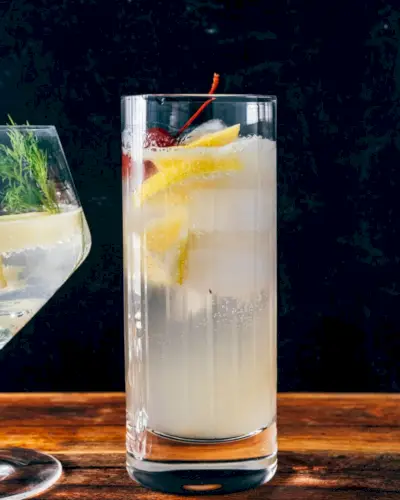 - Pre Bjorna Collinsa: Pridajte aquavit, sirup a citrónovú šťavu do pohára naplneného ľadom a pohár doplňte sódová voda . Ozdobíme kolieskom citróna a koktailovou čerešňou.