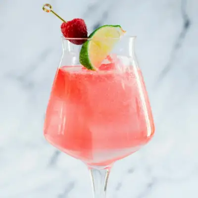 - Precedíme do koktailového pohára. Ak chcete, ozdobte malinou.