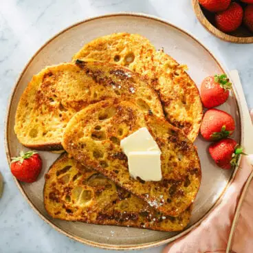 Tento recept na francúzsky toast z kysnutého cesta pripraví raňajky, ktoré si každý zamiluje! Chuť a štruktúra chleba je neodolateľná.