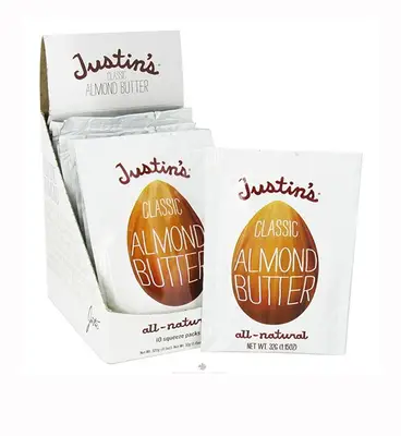 Justin's Classic Mandle Bast Squeeze Balíka: 190 kalórií, 16 g tuku, 2 g nasýteného tuku, 2 g cukru, 7 g bielkovín