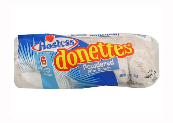 Donettes hostiteľskej práškovej cukru (5): 230 kalórií, 12 g tuku, 31 g sacharidov, 2 g bielkoviny, 13 g cukru